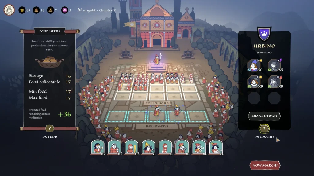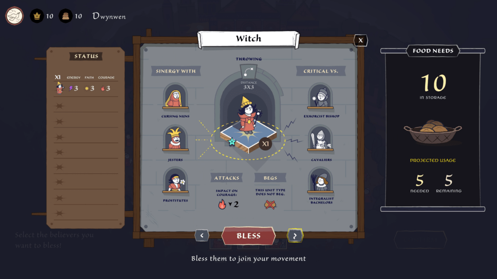 Salah satu mekanisme paling menarik adalah sistem kepercayaan massa. Pengikut tidak selalu rasional—mereka bereaksi terhadap simbol, cerita, dan emosi. Pemain dapat memilih untuk jujur, setengah memanipulatif, atau sepenuhnya oportunis demi memperluas pengaruh. Namun, semakin besar kekuasaan yang dimiliki, semakin besar pula risiko pengawasan dari otoritas Gereja dan pihak yang merasa terancam.