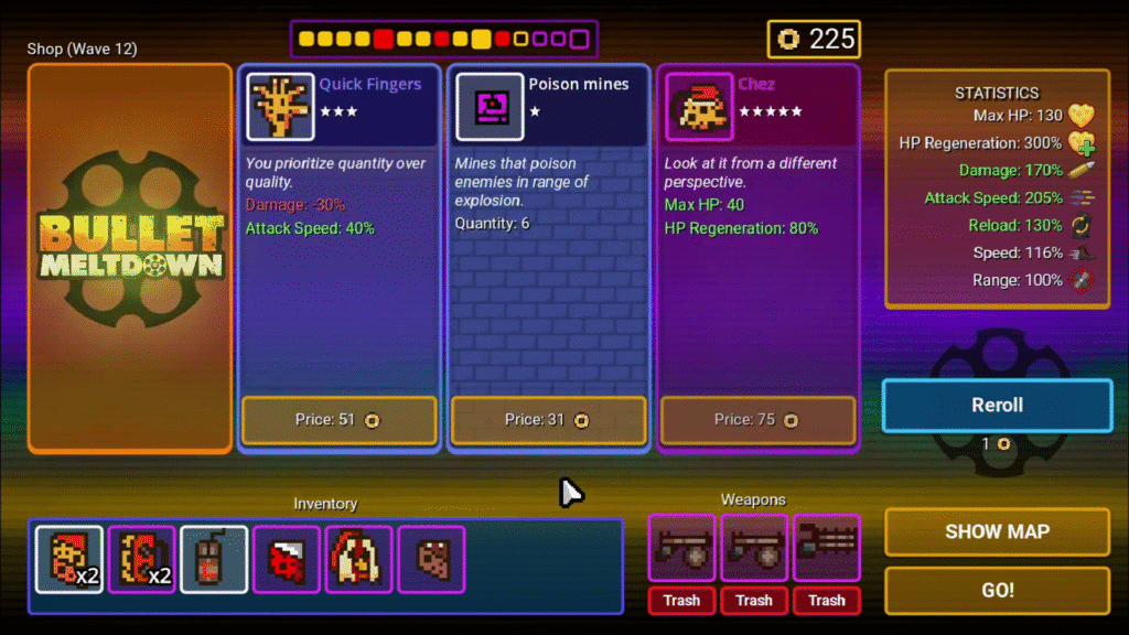 Salah satu aspek menarik dari Bullet Meltdown Demo adalah variasi senjata dan power-up. Pemain dapat menemukan berbagai peningkatan yang mengubah cara bermain.