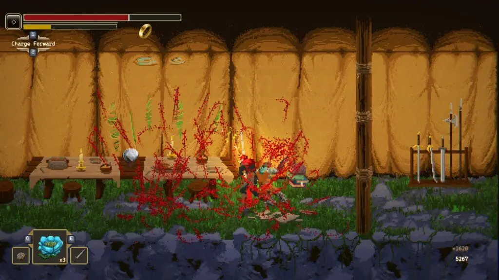 Salah satu daya tarik utama Crimson Capes adalah gameplay-nya yang menggabungkan elemen soulslike dengan perspektif 2D side-scrolling.