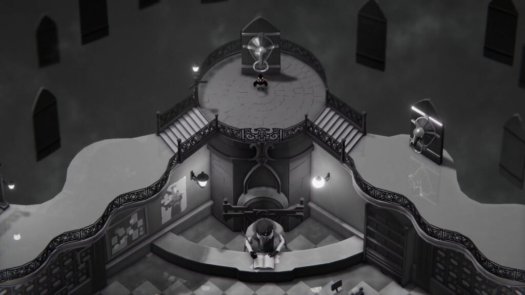 Premis Death’s Door sangat unik sekaligus menggelitik. Anda tidak bermain sebagai pahlawan super atau ksatria legendaris, melainkan sebagai seekor gagak kecil yang bekerja di “Reaping Commission Headquarters”. Ini adalah sebuah kantor birokrasi bernuansa noir dan monokromatik di mana kematian dikelola layaknya administrasi perkantoran yang membosankan. Para gagak bekerja mencabut nyawa makhluk hidup, mengecap kartu jam kerja, dan berusaha memenuhi kuota.