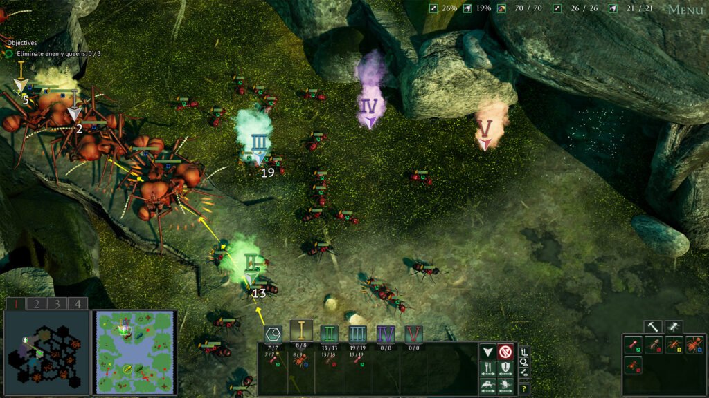 Selain itu, sistem pheromone marker memungkinkan pemain memberi perintah dengan cara yang intuitif, seolah benar-benar mengendalikan koloni semut secara alami. Mekanisme ini menjadi ciri khas game dan memberikan pengalaman RTS yang berbeda dari biasanya.