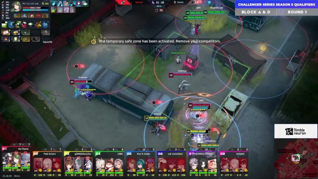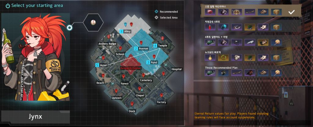 Zona permainan juga akan menyusut secara bertahap, memaksa pemain untuk bergerak dan berhadapan satu sama lain, layaknya sistem zona di PUBG atau Fortnite. Namun di Eternal Return, kontrol vision, timing crafting, dan pemilihan pertarungan (engage atau disengage) jauh lebih menentukan.