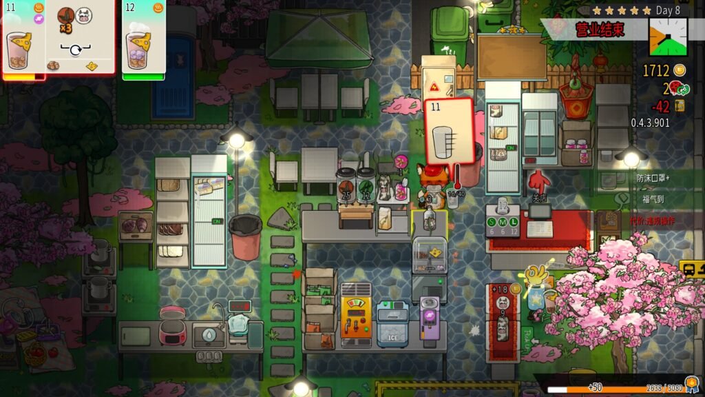 Salah satu keunggulan Feed the Cups adalah sistem progresinya. Di awal permainan, kafe terasa sepi dan mudah dikelola. Namun, seiring berjalannya waktu, pelanggan datang lebih cepat, pesanan makin beragam, dan tata letak kafe menjadi lebih kompleks.