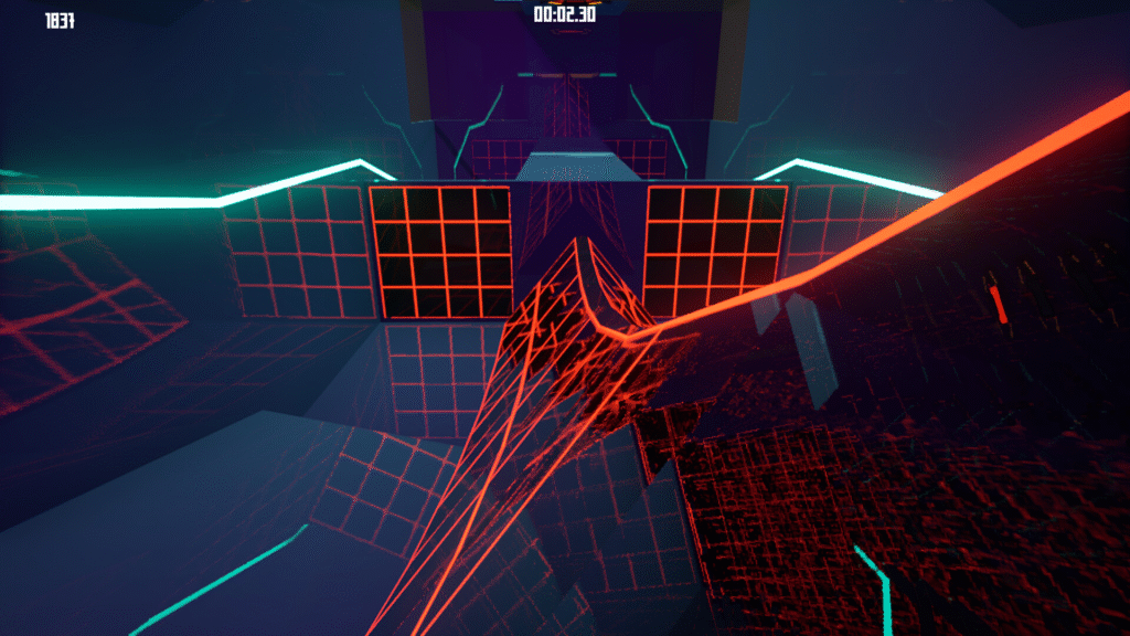Efek visual seperti cahaya, partikel, dan animasi platform yang bergerak mengikuti musik memberikan kesan dinamis. Setiap aksi pemain, seperti lompatan atau dash, juga disertai efek yang memperkuat hubungan antara gameplay dan musik.