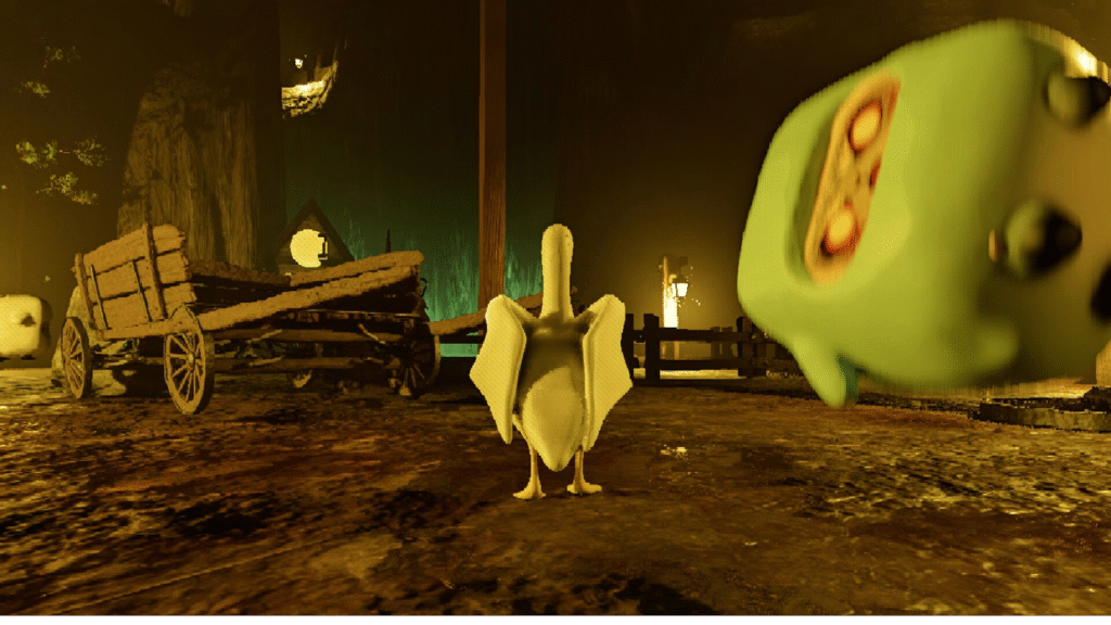 Animasi karakter juga menjadi nilai tambah. Gerakan angsa yang lincah dan ekspresif memberikan kesan hidup, sementara efek serangan yang berlebihan justru menambah unsur komedi.