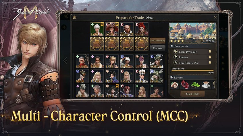 Salah satu ciri khas terbesar Granado Espada—yang tetap dipertahankan di versi mobile—adalah sistem multi-karakter. Berbeda dengan MMORPG lain di mana pemain hanya mengendalikan satu karakter utama, di Granado Espada Mobile pemain dapat mengendalikan hingga tiga karakter secara bersamaan dalam satu tim.