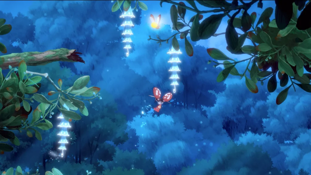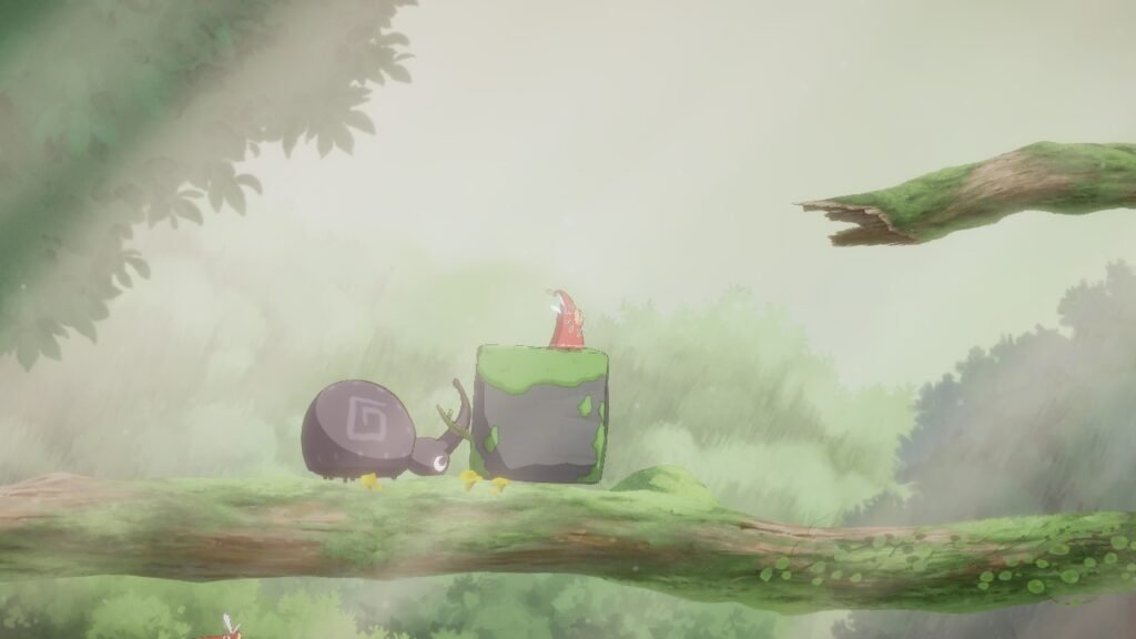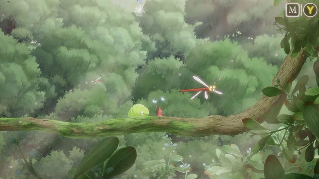 - Interaksi dengan Makhluk Hidup: Alih-alih melawan musuh, Anda justru bekerja sama dengan penghuni hutan. Kepik raksasa bisa menjadi pijakan, dan larva kecil bisa membantu Anda mencapai tempat tinggi.