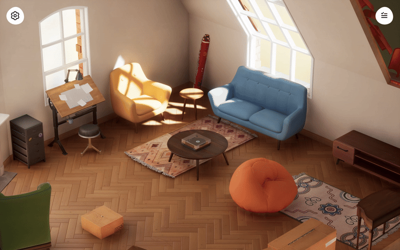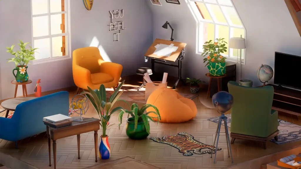 - Interaksi Barang yang Detail: Setiap item dalam Hozy memiliki bobot dan interaksi yang nyata. Anda bisa membuka laci, mengatur posisi buku di rak secara presisi, hingga menyalakan lampu meja untuk melihat bagaimana cahaya memantul di sudut ruangan.