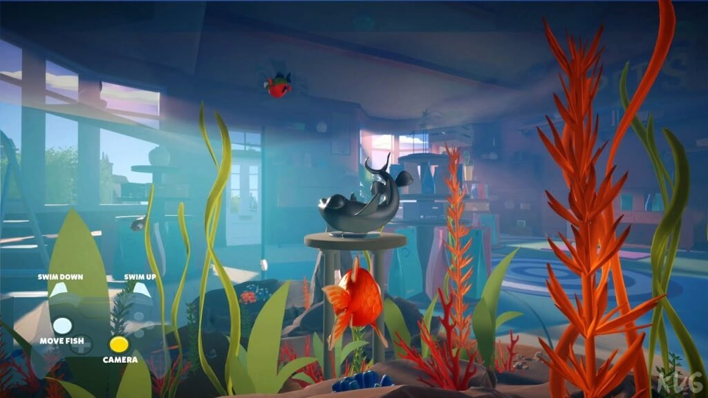 Secara visual, I Am Fish tampil dengan gaya kartunis yang cerah dan menyenangkan. Lingkungan dalam game—mulai dari jalanan kota, pantai, hingga saluran air—dirancang dengan detail yang cukup baik. Kontras antara ikan kecil dan dunia manusia yang besar semakin menegaskan rasa “ketidakberdayaan” karakter yang dimainkan.