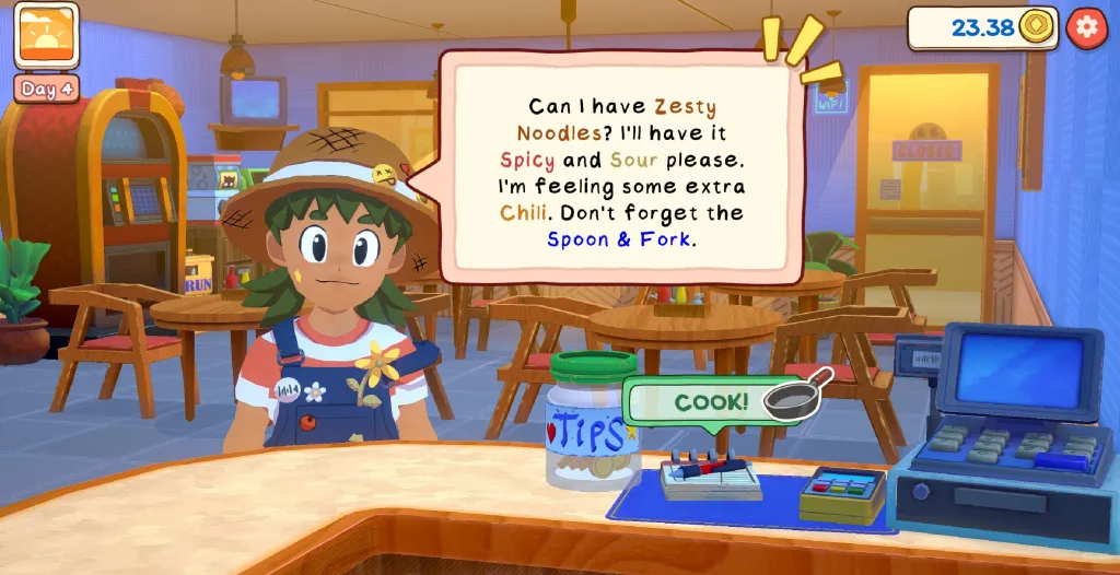 • Eksperimen Rasa: Pemain ditantang untuk menciptakan masakan unik yang disesuaikan dengan preferensi pribadi pelanggan. Memberikan pesanan yang tepat akan meningkatkan tingkat persahabatan (friendship level), yang nantinya akan membuka akses ke resep rahasia atau bahan-bahan langka.