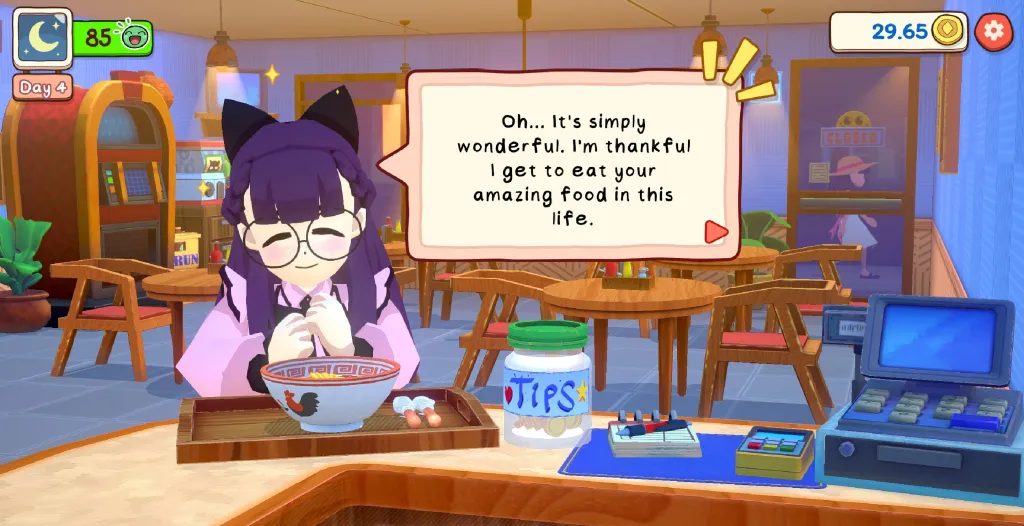 • Dialog yang Menghangatkan: Melalui percakapan di meja kasir, Anda akan memahami latar belakang mereka, menjadikan pengalaman bermain terasa lebih personal dan bermakna.