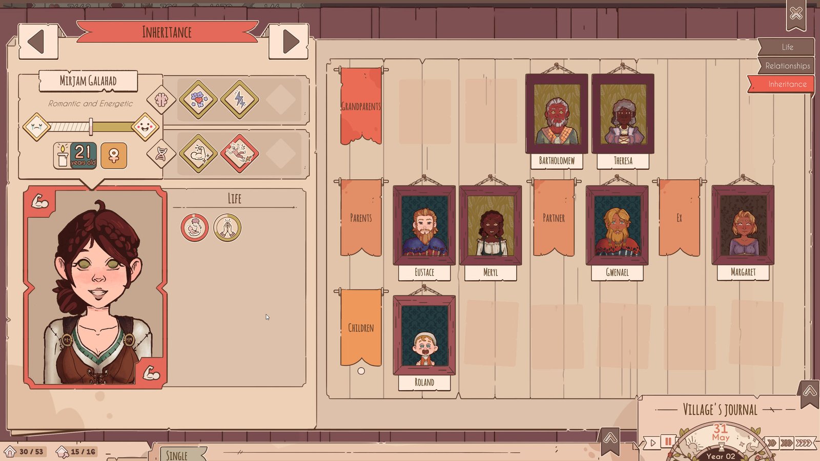 Pemain mengelola kota abad pertengahan Lakeburg dan penduduknya. Penduduk desa dihasilkan secara acak. Untuk menjaga tingkat kebahagiaan, pemain perlu menugaskan penduduk desa ke pekerjaan yang mereka sukai dan menjaga agar tempat kerja yang relevan memiliki staf yang memadai. Pemain juga bertanggung jawab atas hubungan antar penduduk desa. Orientasi seksual tidak menjadi masalah; setiap penduduk desa dapat menikah dengan bukan kerabat, dan setiap pasangan dapat memiliki anak. Anak-anak meninggalkan rumah ketika mereka mencapai usia 18 tahun dan harus diberi rumah sendiri. Jika kedua orang tua menikah lagi, dan keduanya memiliki anak yang sudah ada sebelumnya, anak-anak yang tidak dapat masuk ke rumah keluarga baru akan menjadi yatim piatu. Jika pemain berhasil menjodohkan pasangan, mereka dapat menggunakan poin cinta yang dihasilkan untuk menarik penduduk desa baru ke desa dengan membuat mereka jatuh cinta dengan penduduk desa yang sudah ada. Jika tidak, penduduk desa baru dapat disuap untuk berimigrasi ke Lakeburg. Permainan berlangsung selama 30, 75, atau 100 tahun. Di akhir permainan, pemain dapat membuka karya seni yang menggambarkan kehidupan di Lakeburg tergantung pada seberapa sukses mereka mengelola kota.