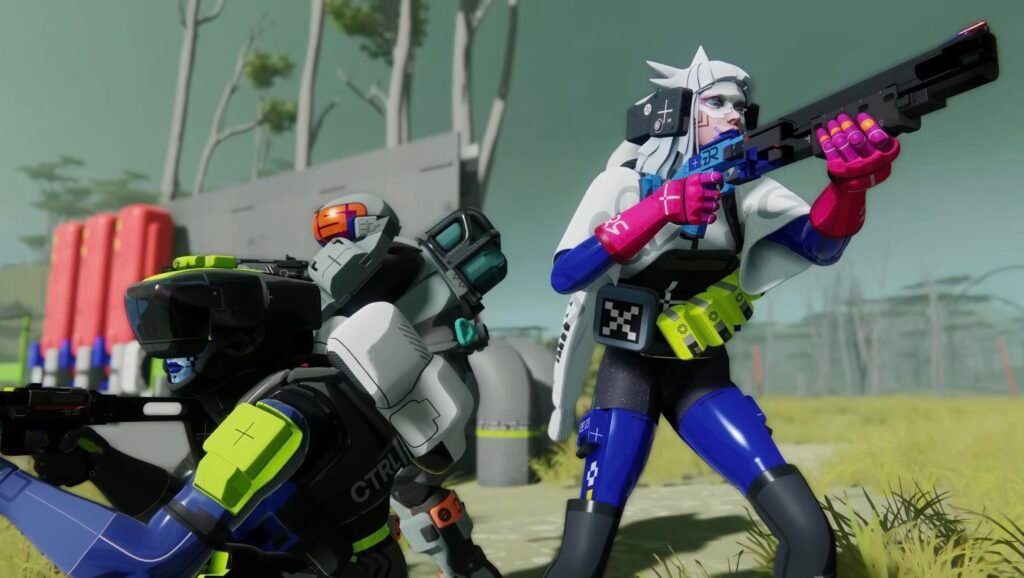 Desain karakter yang futuristik, penuh warna neon, dan gaya pseudo-cyberpunk menjadi ciri visual Marathon modern.