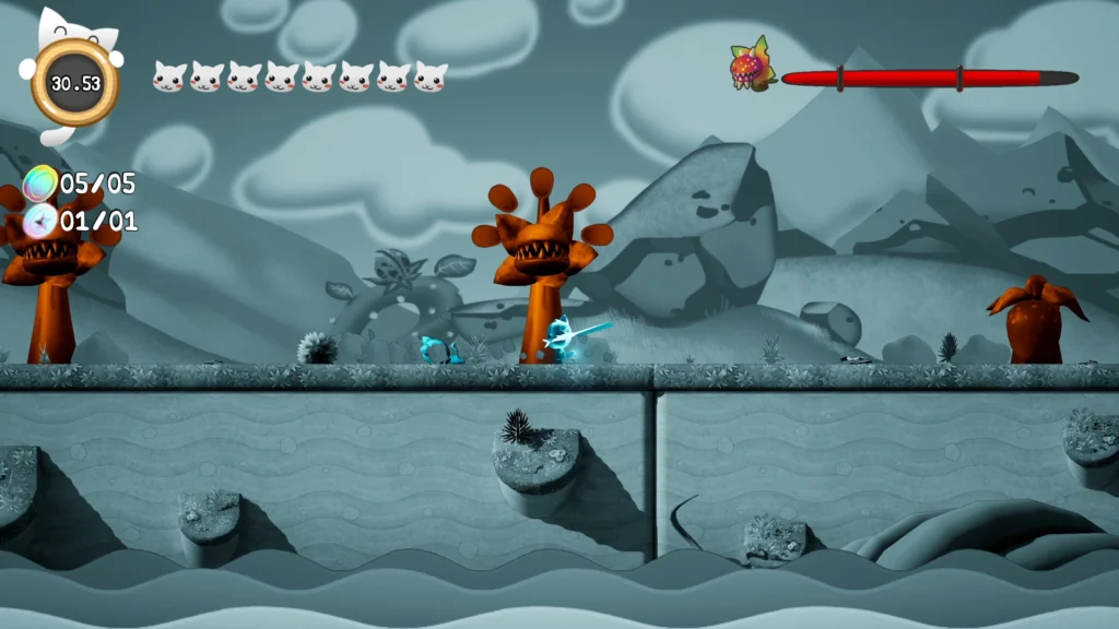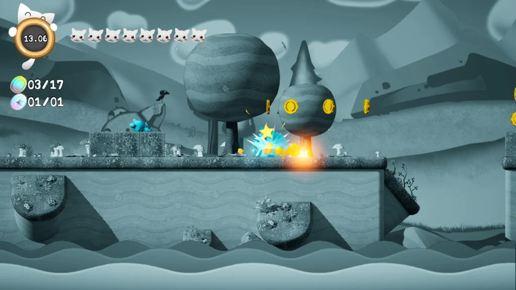 Pemain berperan sebagai seekor kucing heroik dalam misi penyelamatan yang mendebarkan. Namun, ini bukan sekadar kucing biasa; ia memiliki kemampuan unik untuk beralih antara wujud fisik 2D dan wujud hantu 3D. Kemampuan inilah yang menjadi kunci untuk melewati lebih dari 40 level yang tersebar di delapan dunia yang penuh misteri dan tantangan.