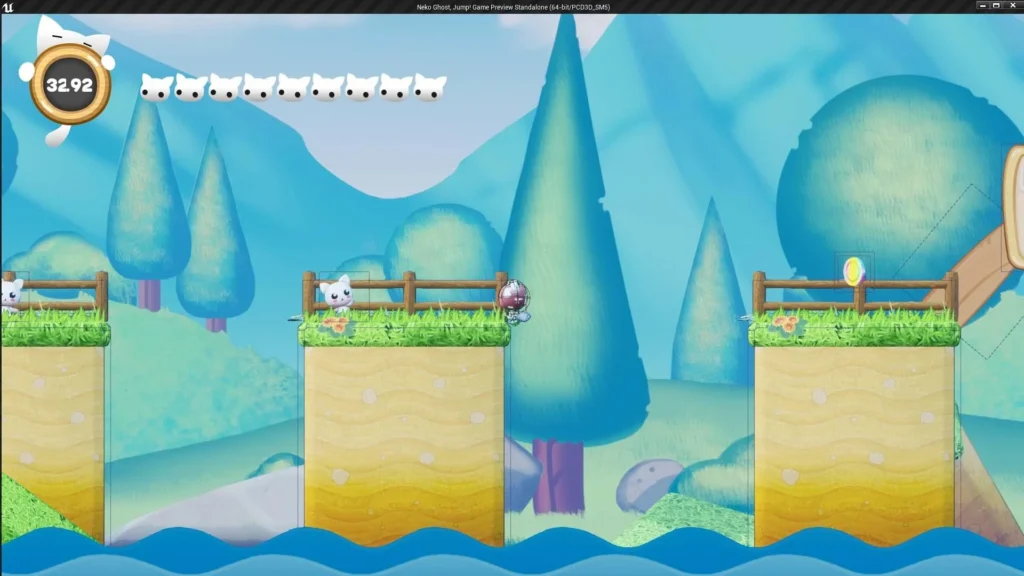 Dengan total lebih dari 40 level, kurva kesulitan dalam Neko Ghost, Jump! dirancang dengan sangat baik. Level-level awal berfungsi sebagai tutorial yang memperkenalkan konsep dasar, sementara level-level akhir akan benar-benar menguji koordinasi tangan dan mata serta kemampuan pemecahan masalah Anda.