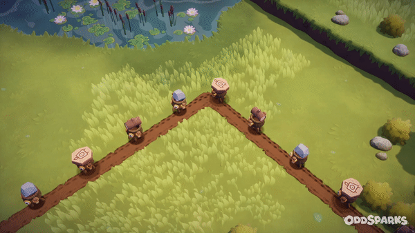 Oddsparks berlatar di dunia fantasi yang dihuni oleh makhluk kecil menggemaskan bernama Sparks. Makhluk inilah yang menjadi inti dari seluruh sistem otomasi dalam game. Alih-alih menggunakan conveyor belt atau mesin industri besar, pemain memanfaatkan Sparks sebagai “tenaga kerja hidup” untuk mengangkut barang, mengoperasikan bangunan, dan menghubungkan satu sistem dengan sistem lainnya.