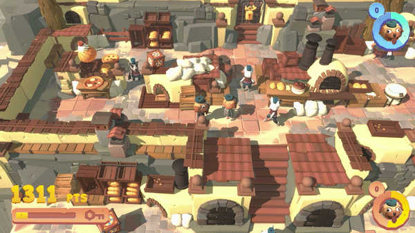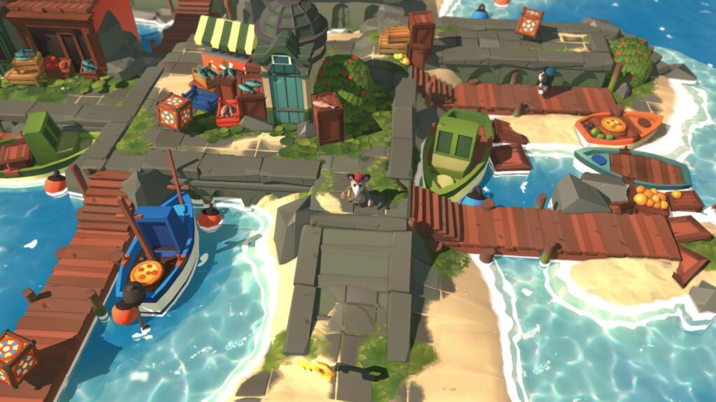 Namun, kota ini tidak membiarkan makanan mereka hilang begitu saja. Para anjing penjaga yang patroli siap menangkap Anda jika Anda terlalu ceroboh. Di sinilah letak keseruannya—perpaduan antara elemen stealth yang menegangkan dan aksi kejar-kejaran yang kocak. Anda harus menyelinap di balik semak-semak, bersembunyi di dalam tong sampah, dan menunggu saat yang tepat untuk menyergap sepotong pizza raksasa.