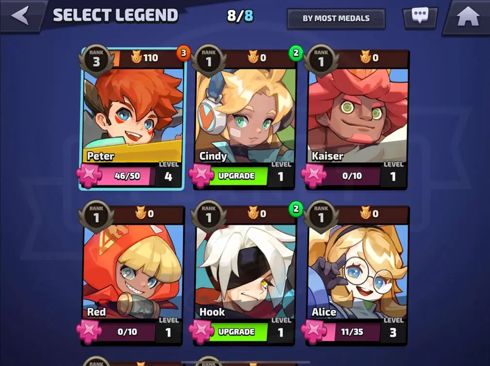 Setiap karakter memiliki senjata, gaya bertarung, dan skill unik. Ada Legend bertipe melee dengan serangan jarak dekat yang agresif, karakter ranged yang mengandalkan proyektil, hingga support yang fokus membantu tim. Keunikan ini mendorong pemain untuk bereksperimen dan menyesuaikan komposisi tim agar lebih efektif dalam setiap mode permainan.