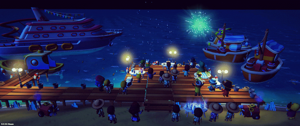 Sinergi gameplay ini menciptakan pengalaman santai yang terasa seperti liburan bersama di pulau tropis virtual.