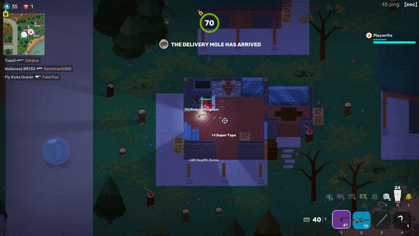 Dari sisi visual, Super Animal Royale mengusung gaya 2D dengan warna cerah dan desain karakter yang ekspresif. Animasi gerakan dibuat halus dan responsif, mendukung gameplay yang cepat. Efek visual saat pertempuran cukup jelas tanpa membuat layar terasa penuh atau membingungkan.