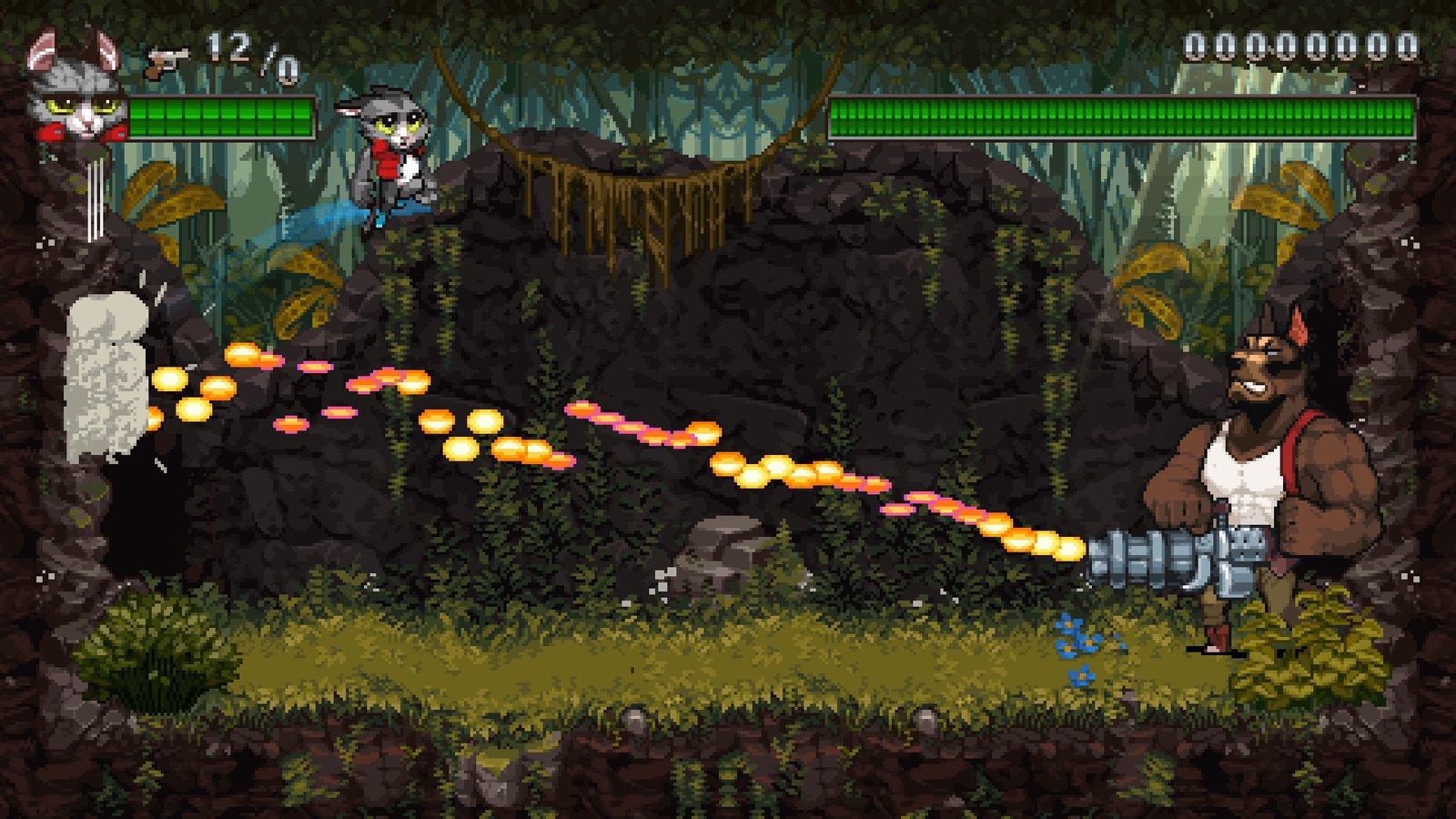 - Gaya jadul berpadu dengan fitur-fitur modern! Super Catboy menggabungkan platforming jadul dengan mekanisme baru yang seru dari genre run’n’gun dan beat em-up.
